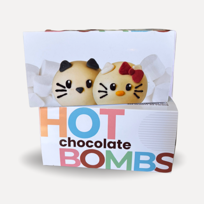 Bombas de Chocolate Belga . 2 unidades de 60grs , rellenas de marshmallows para sumergir en leche o la bebida de tu preferencia, sabor chocolate de leche 33%